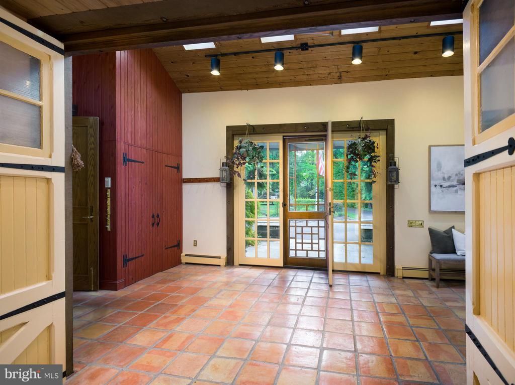 Discover one of the most distinctive Radnor homes for sale — a historic converted Carriage Home nestled on over 2 private acres, offering timeless character, modern comfort, and limitless potential in the heart of the Main Line. With over 4,100 square feet of living space, this 3-bedroom, 2-bathroom home includes a loft, office, and the architectural charm of a true heritage property. Builders and visionaries alike will be drawn to the opportunity to customize or expand this exceptional residence into a legacy family estate. The front entry opens to a dramatic foyer anchored by an original interior gray stone wall—a striking architectural feature that reflects the home’s carriage house origins. High ceilings, long hallways, deep window sills, hardwood and parquet flooring, oversized oak doors, and interior barn doors establish a sense of craftsmanship, warmth, and timeless character from the moment you arrive. The family room is both inviting and impressive, featuring custom built-in cabinetry and shelving that provide generous storage and display space while framing the room beautifully. A convenient wet bar, recessed lighting, warm wood floors, and an easy flow to adjacent living and dining areas make this an ideal space for everyday living and relaxed entertaining. Extending the living space outdoors, the composite deck offers a peaceful vantage point overlooking the grounds—perfect for morning coffee, evening cocktails, or simply enjoying the quiet beauty of the property. At the heart of the home, the kitchen is bright, welcoming, and thoughtfully designed for both daily use and hosting. Custom wood cabinetry, generous counter space, and a large center island with seating create a highly functional layout, while skylights and recessed lighting flood the space with natural light. The kitchen flows seamlessly into the dining room, where walls of windows frame breathtaking views of the rear yard and pool beyond—making every meal feel connected to the outdoors. The dining room offers a stunning setting for gatherings of any size, with panoramic views of the surrounding landscape and direct access to the porch, enhancing the home’s effortless indoor-outdoor lifestyle. The living room provides a more intimate yet equally refined space, centered around a fireplace and surrounded by oversized windows that frame lush garden views and fill the room with soft natural light. The primary bedroom is a serene retreat, generously sized and complemented by an adjoining sitting room that offers flexible use as a private lounge, office, or reading nook. Large windows bring in abundant light and tranquil views, creating a calm and restorative atmosphere. The primary bathroom features classic tilework, a soaking tub, separate shower, and dual vanities, with a unique direct connection to the guest bedroom—allowing for a flexible and thoughtful layout ideal for guests, family, or a private secondary suite. Completing this level is an additional bedroom/office with access to the third floor loft - a versatile bonus space ideal for a home office, creative studio, lounge, or additional living area. Vaulted ceilings, skylights, and exposed beams enhance the architectural character while flooding the space with natural light. The rear of the property opens to the home’s beloved “back 40,” where expansive green space, mature trees, and frequent wildlife sightings create a sense of complete seclusion. A newer Trex deck offers the perfect setting for outdoor entertaining, while the grounds provide ample space for recreation, relaxation, and unforgettable gatherings by the pool.
